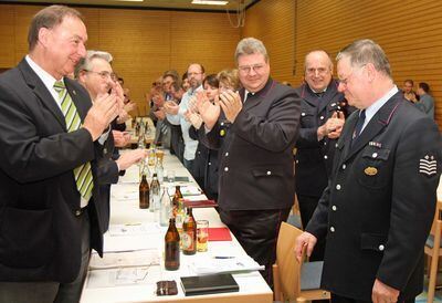 Mit lang anhaltendem Beifall wurde Peter Eisele (rechts) nach zwanzig Jahren als Feuerwehr-Chef verabschiedet.