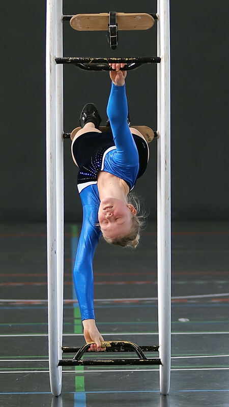 Konzentration und Körper- beherrschung: Über fünfzig Turnerinnen waren bei den ersten Rhönrad-Gaumeisterschaften dabei, die am Samstag in der Sonnenbühler Sporthalle ausgetragen wurden. FOTO: BAIER