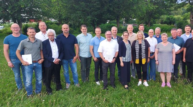 Der neue Gemeinderat Trochtelfingen hat sich bei der konstituierenden Sitzung fürs Gruppenfoto zusammengestellt. Mit dabei sind auch die vier Ortsvorsteher aus Hausen, Steinhilben, Wilsingen und Mägerkingen sowie Bürgermeisterin Katja Fischer. Es fehlt Isabell Freidler.