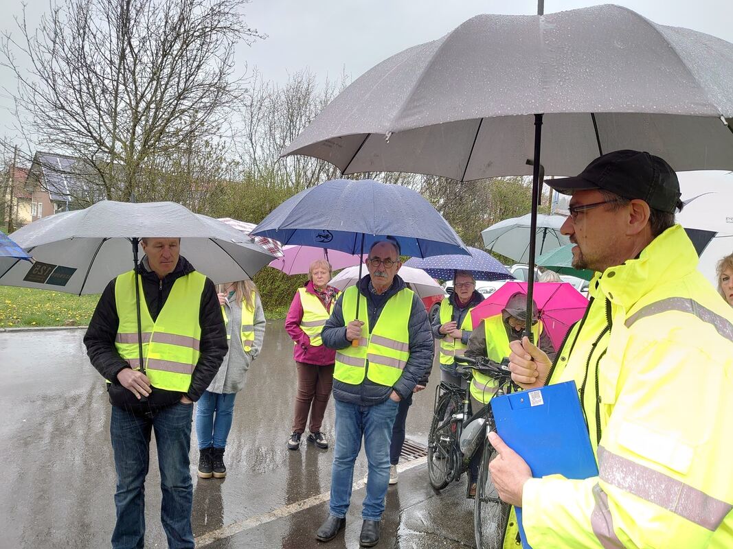 Lärmschutzexperte Claus Kiener (vorne rechts) beim Lärmspaziergang im Mai vergangenen Jahres in Kleinengstingen.