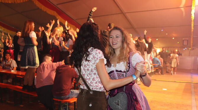 Tolle Stimmung beim Engstinger Herbst: Wer nicht auf den Bänken feierte, tanzte zu zweit zu ansteckender Blasmusik. FOTO: BLOCHING