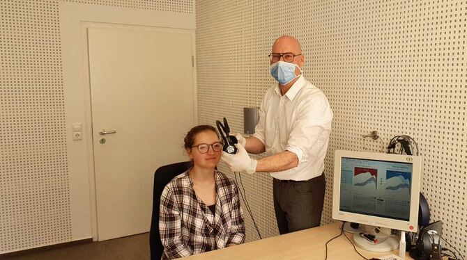 Manchmal sieht’s bei Ulf Gaus ein bisschen aus wie in der Arztpraxis: Auch Optiker und Hörgeräte-Akustiker tragen aufgrund der körperlichen Nähe zu ihren Kunden zurzeit Schutzausrüstung. FOTO: PRIVAT