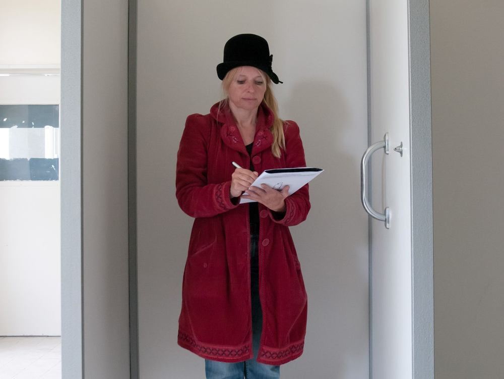 Mirja Wellmann protokolliert die Geräusche des Duschraums. FOTO: WOLF NKOLE