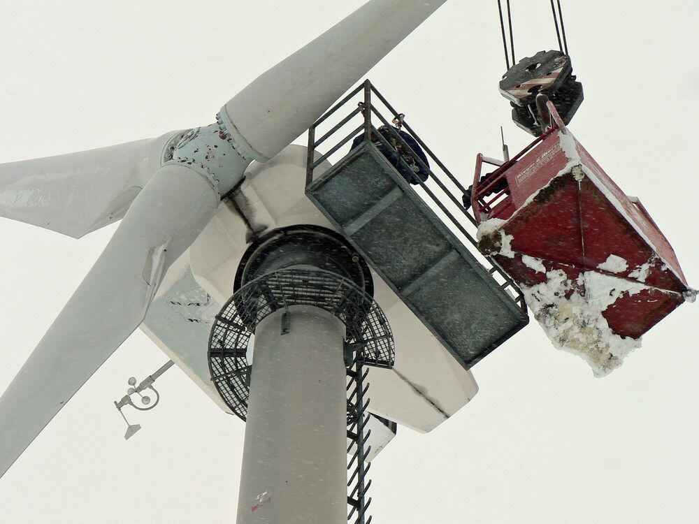 Das älteste Windrad der Schwäbischen Alb bei Ennabeuren wird abgebaut.