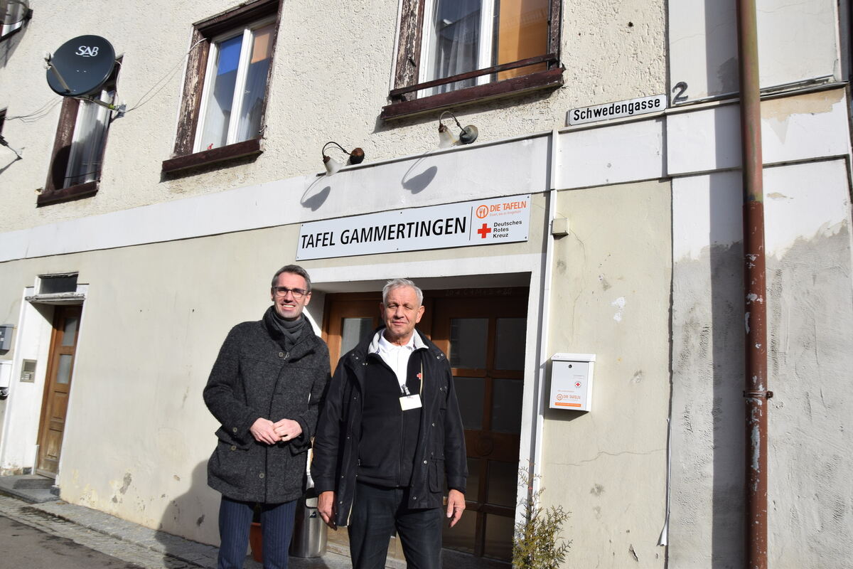 Der Tafelladen hat wieder geöffnet. Gerd Will (links) und Uwe Müller vor den neuen Räumen im »Schlössle«. FOTO: WURSTER