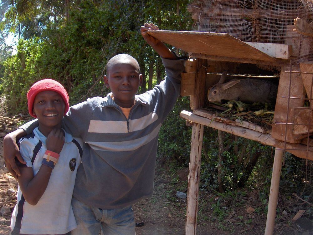 Das Kaninchen von Clemens und Paul ist nicht zum Schlachten gedacht, sondern zum Streicheln. FOTO: GISELA KELLER