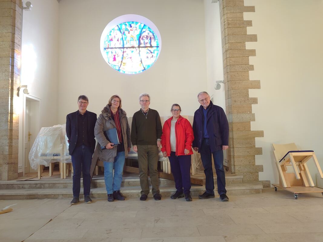 Albert Hörz und Ulla Haas vom Architekturbüro Riehle Koeth, Pfarrer Ulrich Deißinger, Kirchenmusikerin Ulrike Göggel und Volker Schneider, Vorsitzender des Fördervereins Evangelische Kirche Gammertingen.