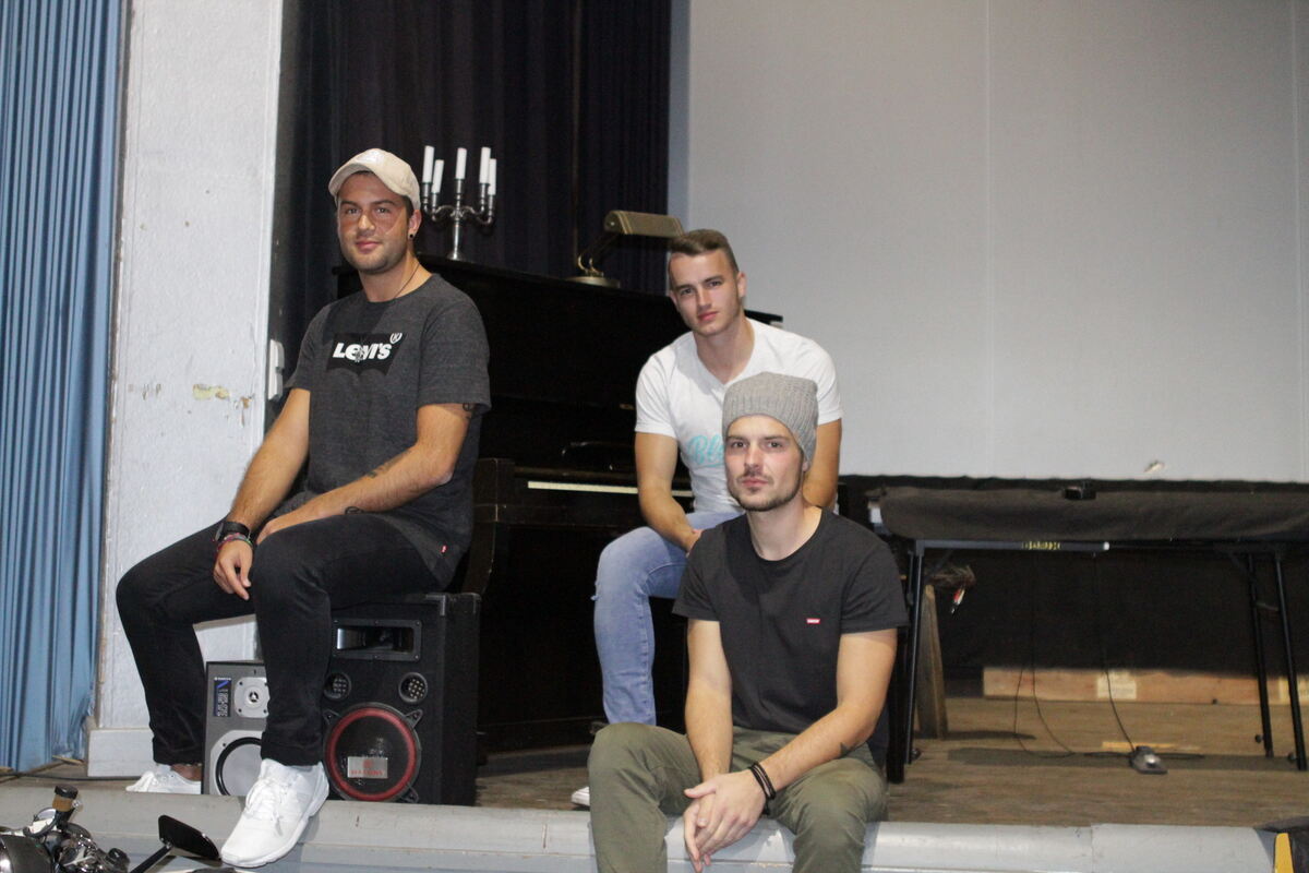 Fabio Lentini (links) hat in Markus Beck (vorne) und Joshua Schmid musikalische Mitstreiter gefunden: Alle drei singen nicht nur, sondern spielen auch Instrumente. FOTO: SCHRADE