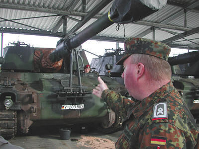 Schon im Sommer 2002 hat sich das Bataillon von seinen Panzerhaubitzen getrennt. Hauptfeldwebel Harald Zimmermann überwacht den Abzug.
