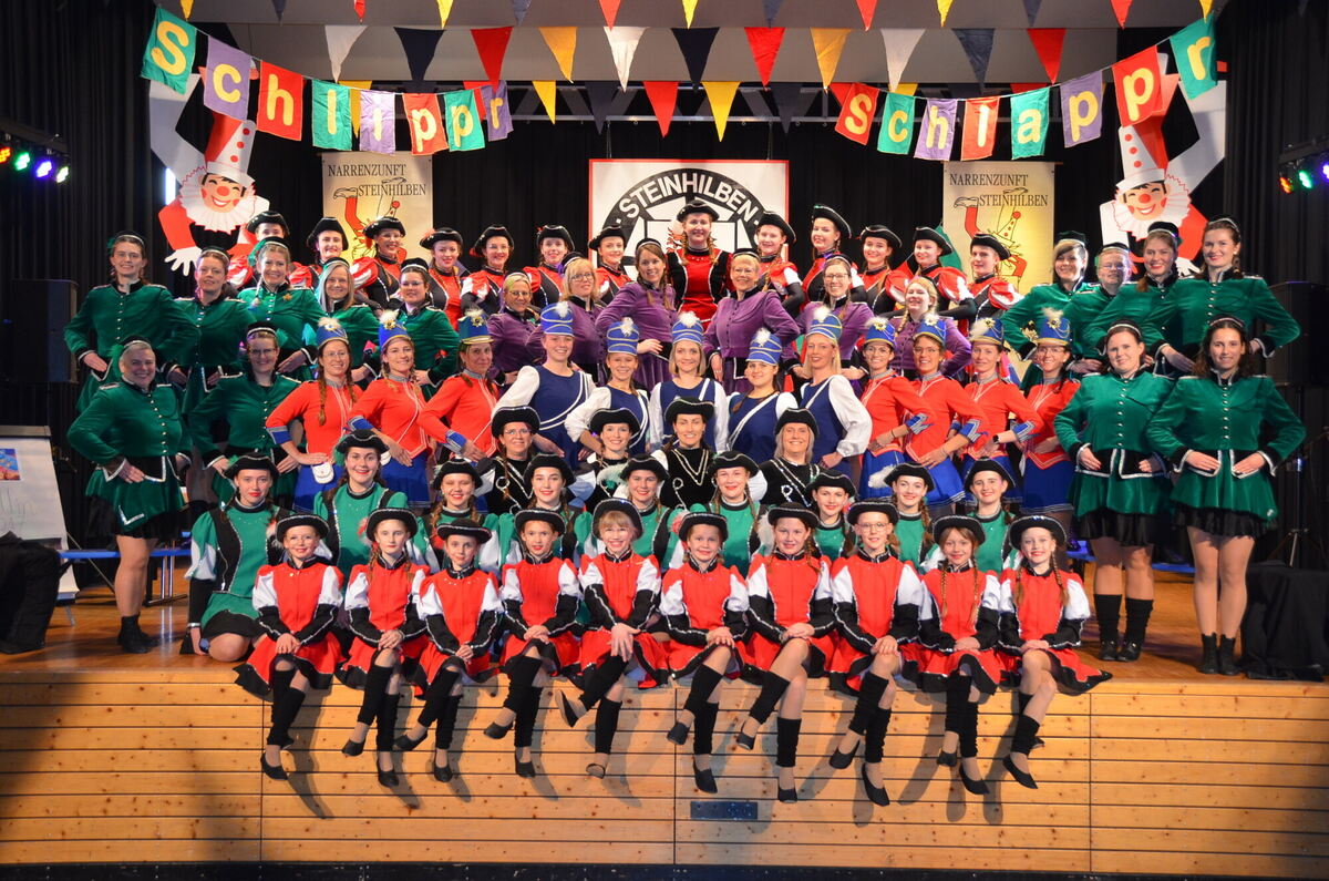 Alle auf einen Blick: Die Tänzerinnen der Steinhilber Mini-, Junioren- und Aktivgarde. FOTO: HÄUSSLER