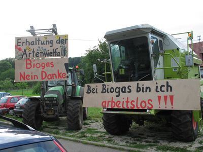 Schweres Geschütz: Die Gegner der geplanten Biogasanlage machen mit ihren landwirtschaftlichen Maschinen mobil.
