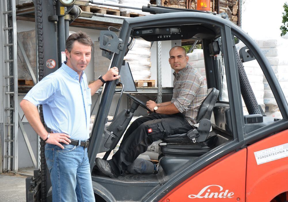 Der beste Mann, den er für sein Lager je hatte: Baustoff-Händler Martin Schmauder (links) hat Rejan Elezovikj bereits fest angestellt. Damit der 34-Jährige mit seiner Familie in Undingen bleiben kann, setzt der Unternehmer sich dafür ein, dass die Familie das Aufenthaltsrecht erhält.
