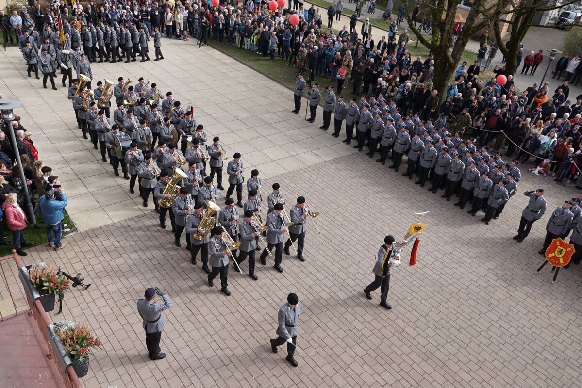 Das Heeresmusikkorps Ulm sorgte beim feierlichen Gelöbnis auf dem Münsinger Matthias-Erzberger-Platz für den musikalischen Rahmen.
