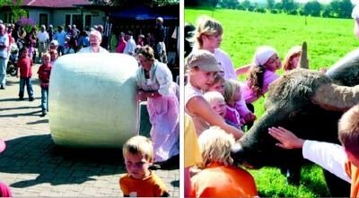 Während die Ehrengäste beim »Käserollen« schwitzten, genoss der Albbüffel die Streicheleinheiten der Kinder.