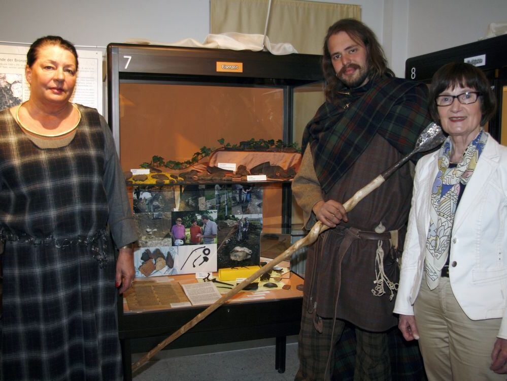 Brigitte und Christoph Eger, die sich der Zeit der Kelten verschrieben haben, und die Leiterin des Kreisarchivs Reutlingen, Irmtraud Betz-Wischnath (von links), bei der Ausstellungseröffnung in Erpfingen.