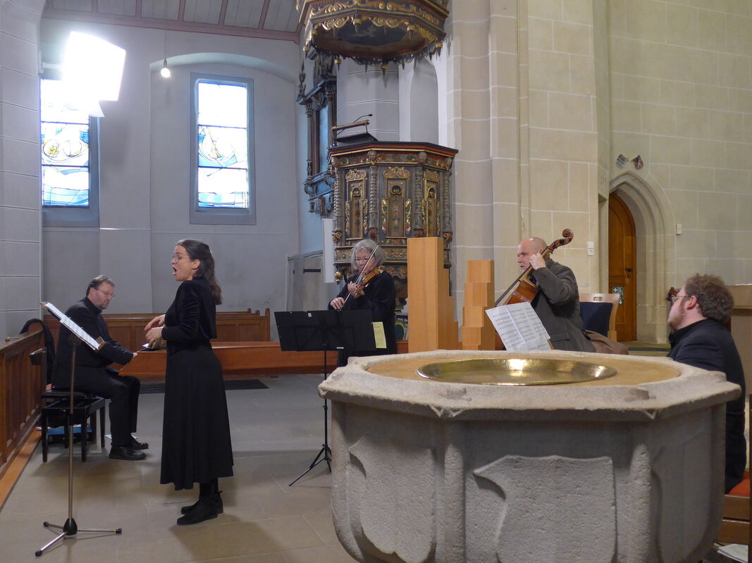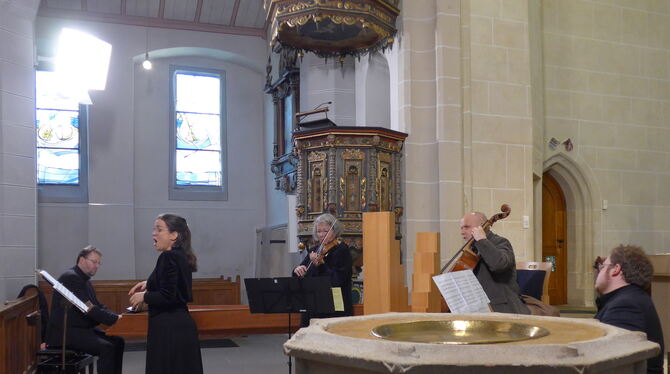 Aufführung mit Barockinstrumenten: Das Kirchenmusik-Ensemble und Sängerin Jana Czekanowsk in der Martinskirche Münsingen.