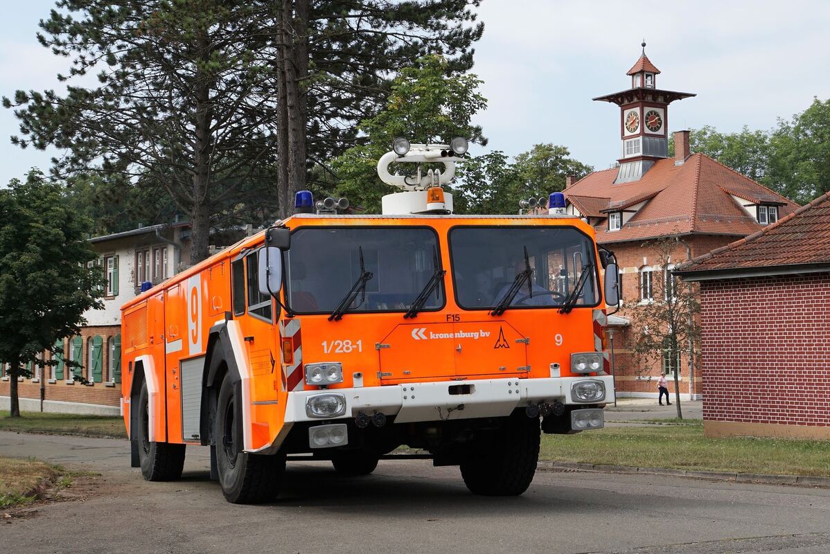 Nicht weil’s brennt, sondern fürs Foto haben die Mitglieder des Oldtimer Clubs Magirus Iveco eines ihrer Exponate vor die Königliche Post im Alten Lager chauffiert. Feuerwehrgeräte aus mehr als einem Jahrhundert gibt’s dort jetzt in drei Hallen zu bewundern. FOTO: LENK