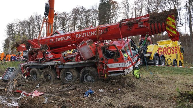 Der Kranwagen steht inzwischen bei der Herstellerfirma Liebherr in Ehingen, wo Spezialisten das Fahrzeug unter die Lupe nehmen. In den nächsten Tagen wird sich entscheiden, ob der Koloss noch zu reparieren ist. Von der Feuerwehr Reutlingen ist zu hören, dass der verletzte 54-jährige Beifahrer aus dem Krankenhaus entlassen wurde. Der 39-jährige Fahrer hatte bereits kurz nach dem Unfall die Klinik verlassen können.