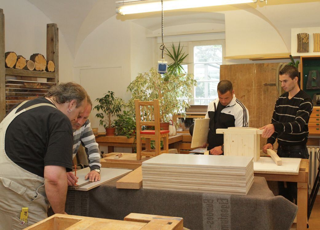 Vorbereitung aufs Leben nach Sucht und Kriminalität: Andreas K., Sascha H. und Tobias H. bei der Arbeitstherapie.