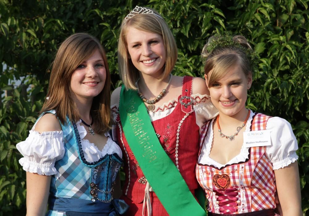 Wacholderkönigin 2012 wurde Linda Claß (links), Wacholderprinzessin Madlen Hofmann (rechts). In der Mitte die scheidende Königin Linda Glocker.