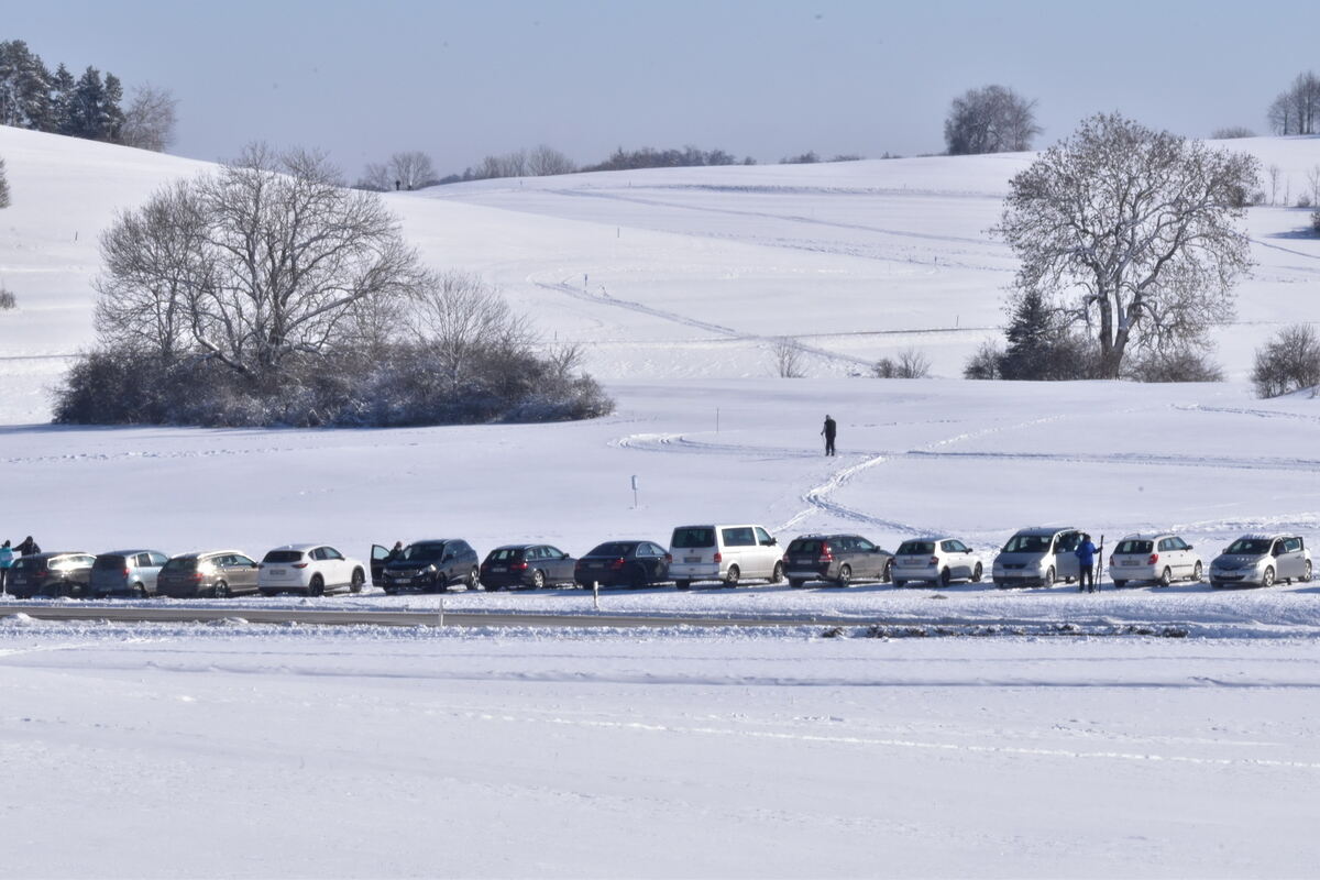 Rund um die Wintersportarena in Holzelfingen kreuzten sich Loipenläufer, Spaziergänger und Schlittenfahrer. Auch die Wanderplätze im Umfeld der Eninger Weide waren gut besucht. Aber auch hier galt die Aussage eines Ordners, der am Sonntagnachmittag in Genkingen am Parkplatz des Skilifts nicht viel zu tun hatte: »Wir haben noch viel Luft nach oben. Alles im grünen Bereich.« Während auf der Schwarzwaldhochstraße und an den Premiumwanderwegen in Albstadt aktuell mehrere Zufahrten wegen Parkplatzmangels von der Polizei gesperrt werden mussten, herrschte auf dem Wanderparkplätzen am Albrand zwar nicht unbedingt gähnende Leere, doch man war weit entfernt von den Situationen an den Tagen um Neujahr, als erst die zur Ordnung eingesetzten Helfer der Feuerwehr die chaotischen Verkehrsbedingungen unter Kontrolle bekamen.