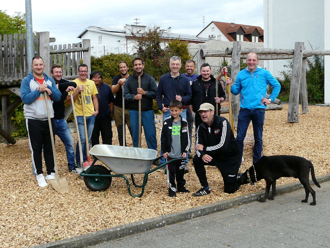 Um den Spielplatz bei der Realschule wieder attraktiv zu gestalten, nehmen etliche Gammertinger Väter auch mal sonntags die Schaufel in die Hand. FOTO: THIEL