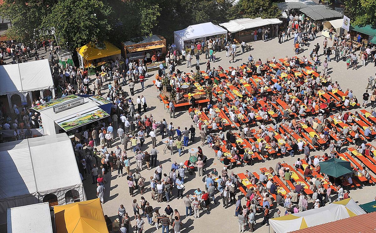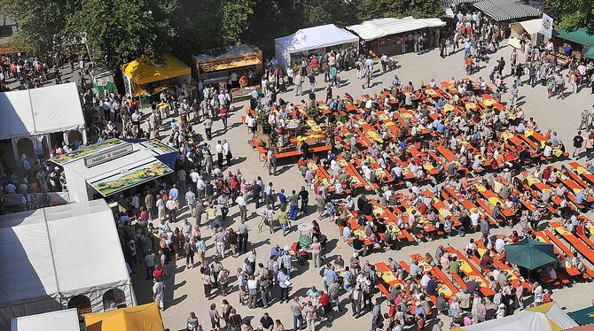 Der Gestütshof St. Johann bei einem früheren Kartoffelfest aus der Vogelperspektive betrachtet. ARCHIVFOTO: TRINKHAUS