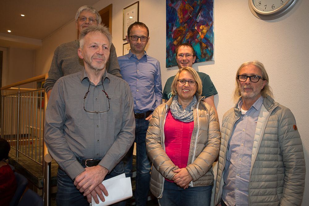 Vertreter der Trochtelfinger Zukunftsteams (von links) Wolfgang Betz, Christine Vöhringer, Bernhard Schoser. Dahinter: Gerhart Hummel, Peter Hack und Sascha Gärtner,. Birgit Schröder von der Arbeitsgruppe Wohnen und Freizeit fehlte.