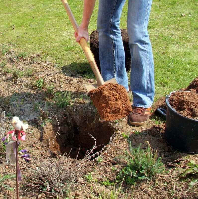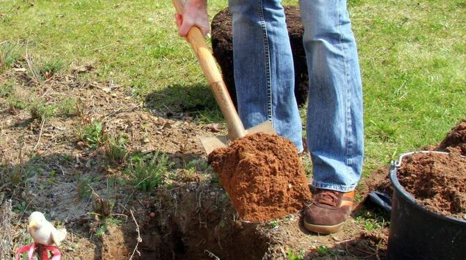 Die Pflanzgrube sollte immer in doppelter Breite des Wurzelballens ausgehoben werden. FOTOS: DISA