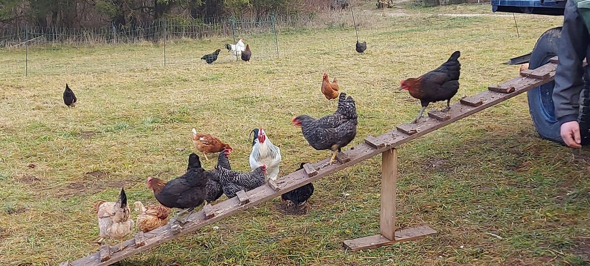 Im Moment geht’s noch rein und raus, wie es den Hühnern gefällt.