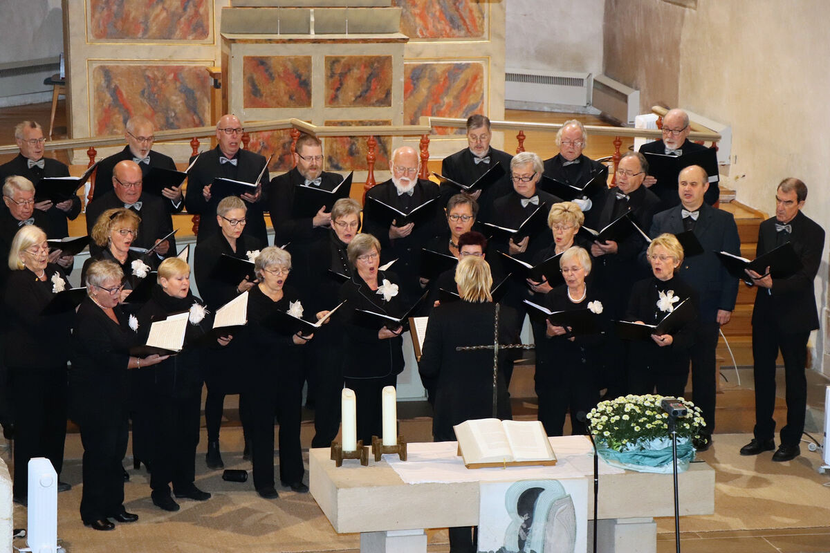 Im Chor des Chorverbands Ludwig Uhland treffen sich alle drei Wochen Sängerinnen und Sänger aus angeschlossenen Chören, um für Konzerte und Auftritte zu proben. Nun traten 27 von ihnen zu einer geistlichen Serenade in Upfingen auf und zogen ihr Publikum eine Stunde lang mit ausgewählten Werken in ihren Bann. Bereits der Einstieg war mit »Komm, heil’ger Geist« und »Herr, unser Herrscher« von Moritz Hauptmann etwas Besonderes: Der Chor bestach durch sein voluminöses Klangbild, in dem die Stimmen der Frauen und Männer ausgeglichen Harmonie schufen.