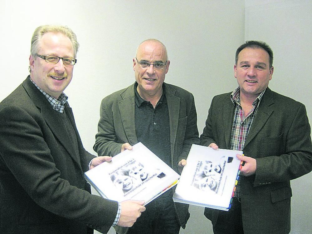 Kooperation im Laucherttal: die Bürgermeister Armin Christ und Holger Jerg (links) bei der Abgabe ihres Antrages beim Leiter des Staatlichen Schulamts Albstadt, Walter Paape (Mitte). FOTO: PR