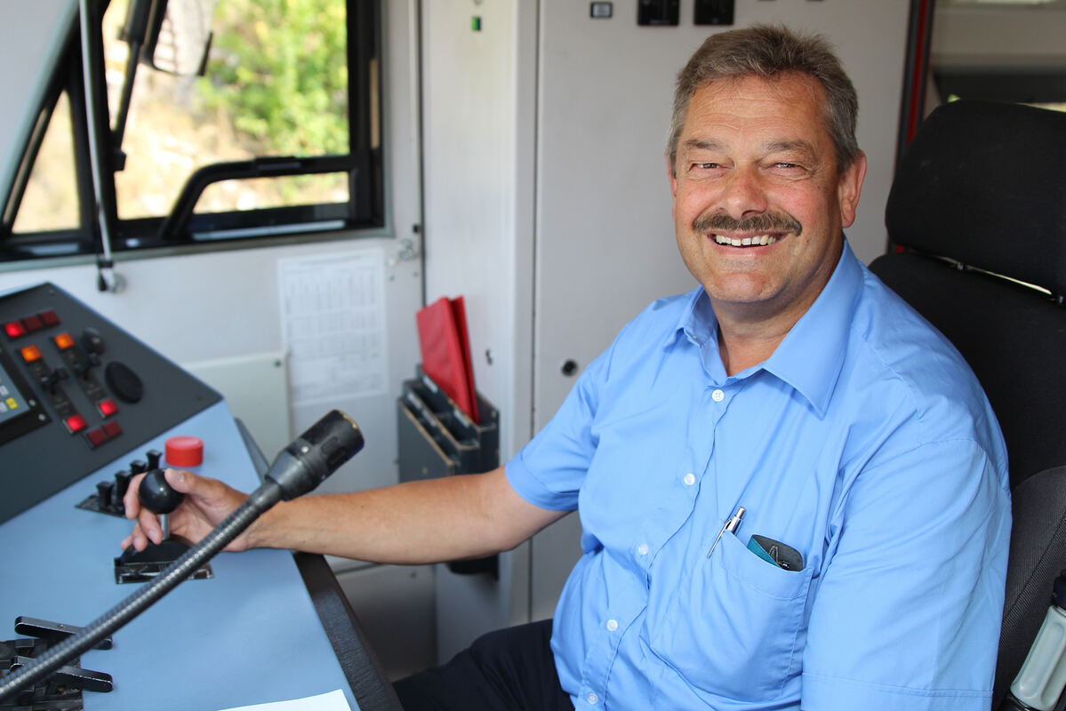 »Kaum zu glauben, dass ich jetzt schon 40 Jahre hier im Unternehmen bin«, sagt Gerhard Mutz. Dass er die beruflichen Jahre nicht als Belastung empfindet, hängt vielleicht auch damit zusammen, dass er seine Tätigkeit gern ausübt: »Ich bin mit Leib und Seele Triebfahrzeugführer.« Seit Kindertagen war sein Berufswunsch, einmal Züge zu steuern. Seine Ferien verbrachte Mutz häufig bei der Oma in Mägerkingen, wo es ihn stets an den Bahnhof zog. Als er als Jugendlicher erfuhr, dass bei der Hohenzollerischen Landesbahn in Gammertingen eine Lehre zum Betriebsschlosser angeboten wird, überlegte er nicht lange. Die Bewerbung war erfolgreich, ebenso die Lehre selbst. Anschließend arbeitete der gebürtige Tailfinger drei Jahre lang als Betriebsschlosser an Loks und Triebwagen in der HzL-Betriebswerkstatt in Gammertingen. 1986 folgte eine weitere Ausbildung zum Lokführer, und seitdem fährt er Menschen und Güter an ihre Zielorte. Am häufigsten ist er in Personenzügen auf der Zollern-Alb-Bahn 2 unterwegs – also auf der Strecke Sigmaringen – Gammertingen – Hechingen – Haigerloch – Eyach.
