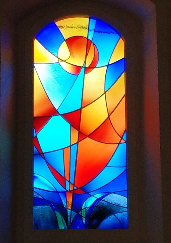 Hergestellt wurde das Fenster von der Kunstglaserei Gaiser & Fieber Esslingen. »Ich habe den Herstellungsprozess begleitet«, sagte Bizer. Die erfahrene Firma legte ihm immer neue Farbverläufe vor, aus denen er die passenden auswählte. Das Fenster zeigt, abstrakt und in schwingenden Linien, ein Segelschiff auf dem wogenden Meer, darüber eine stilisierte Sonne. Das Schiff, so Bizer, ist ein Symbol für Aufbruch, Reise und Ankunft, auch bezogen auf die christliche Gemeinde und das Leben des Einzelnen. Immer »mit im Boot« ist Jesus Christus, auf den Christen ihre Hoffnung auch in stürmischen Zeiten setzen dürfen. Farbiges Glas, so Rose, sollte schon in den gotischen Kirchen das Transzendente, die jenseitige Welt neben der sichtbaren, offenbaren.