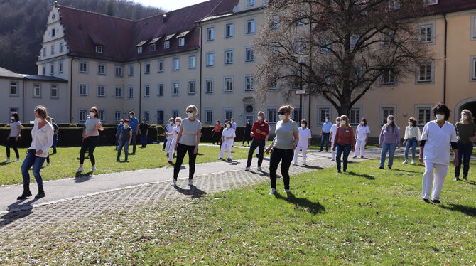Im Klinikpark vor dem Zwiefalter Münster, auf Station, vor dem Flachpflegeheim oder an der Kletterwand – an vielen Orten tanzen die ZfP-Mitarbeitenden mit einem Lächeln im Gesicht zu dem Lied des südafrikanischen Duos Master KG und Nomcebo Zikode.