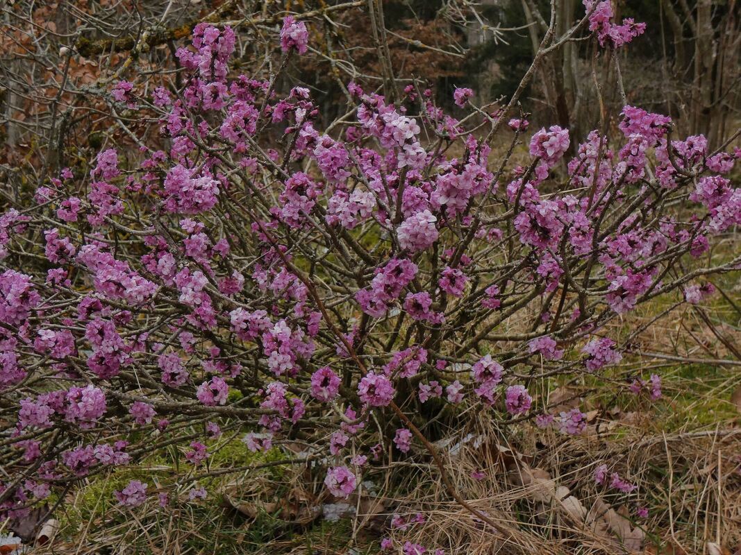 Der Seidelbast gehört mit seinen violett-rosa Blüten zu den ersten Frühlingsboten am Waldrand. Dieses Exemplar ist ungewöhnlich ausladend und eine seltene Pracht. FOTO: KÜNKELE