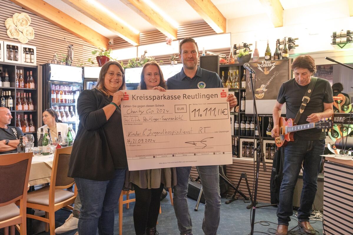 SONNENBÜHL. Es war perfekt: Beim Charity-Turnier auf dem Golfplatz in Undingen lachte Petrus allen 88 Teilnehmern zu, ein Spätsommertag, wie er sich schöner nicht erträumen lässt. Und dies zu einem Ereignis, bei dem schon vorher alle Teilnehmer und der Ambulante Hospizdienst Reutlingen mit seinen ehrenamtlichen Mitarbeitern und vor allem den zu betreuenden Kindern und Erwachsenen als Sieger feststanden. 11.111 Euro standen auf dem Spendenscheck, der letztlich zugunsten des Hospizdienstes überreicht wurde.