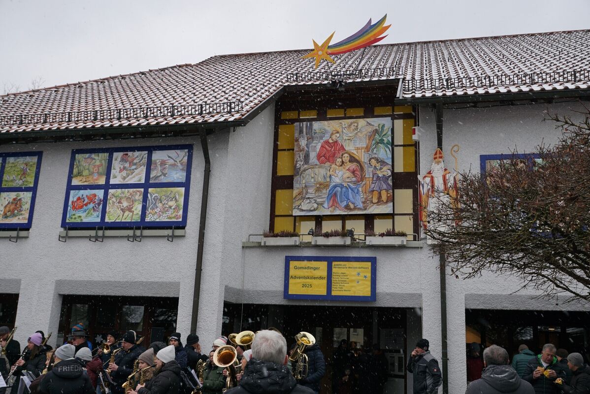 GOMADINGEN. Winterlich kaltes Wetter hielt mehr als 300 Gäste und Gomadinger nicht davon ab, am Nachmittag des 24. Dezember auf den Rathausplatz zu kommen. Dort wurde zu den Klängen weihnachtlicher Musik das letzte Fenster des Adventskalenders geöffnet. Zum Vorschein kam »Die Anbetung«.