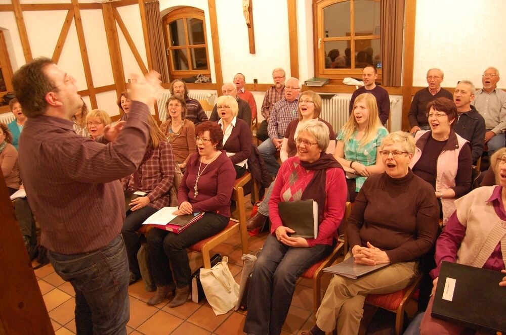Proben mit Spaß: Anton Roggenstein dirigiert den Kirchenchor.
