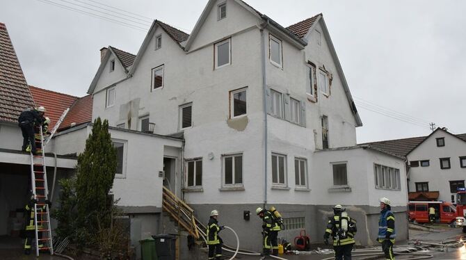 MÖSSINGEN-BELSEN. Gegen 15.20 Uhr hatten Bewohner im Obergeschoss der leerstehenden Gaststätte »Adler« im Belsener Ortskern ein Brand wahrgenommen. In dem verschachtelten und teilrenovierten Gebäude wohnen rund zwanzig Personen. Ein Großteil brachte sich selbst in Sicherheit. Atemschutztrupps der Feuerwehr Belsen holten zwei weitere Personen aus dem Gefahrenbereich. Verletzt wurde niemand. Ein Löschzug der Stadtmitte kam mit der Drehleiter zur Unterstützung.
