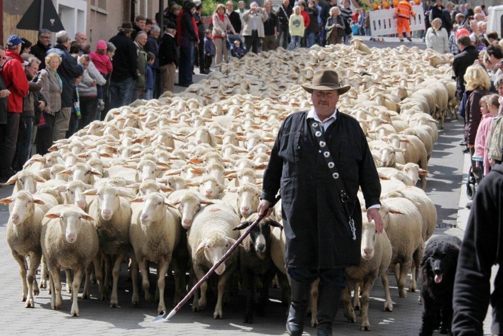 Großer Schafauftrieb am Muttertag in Münsingen