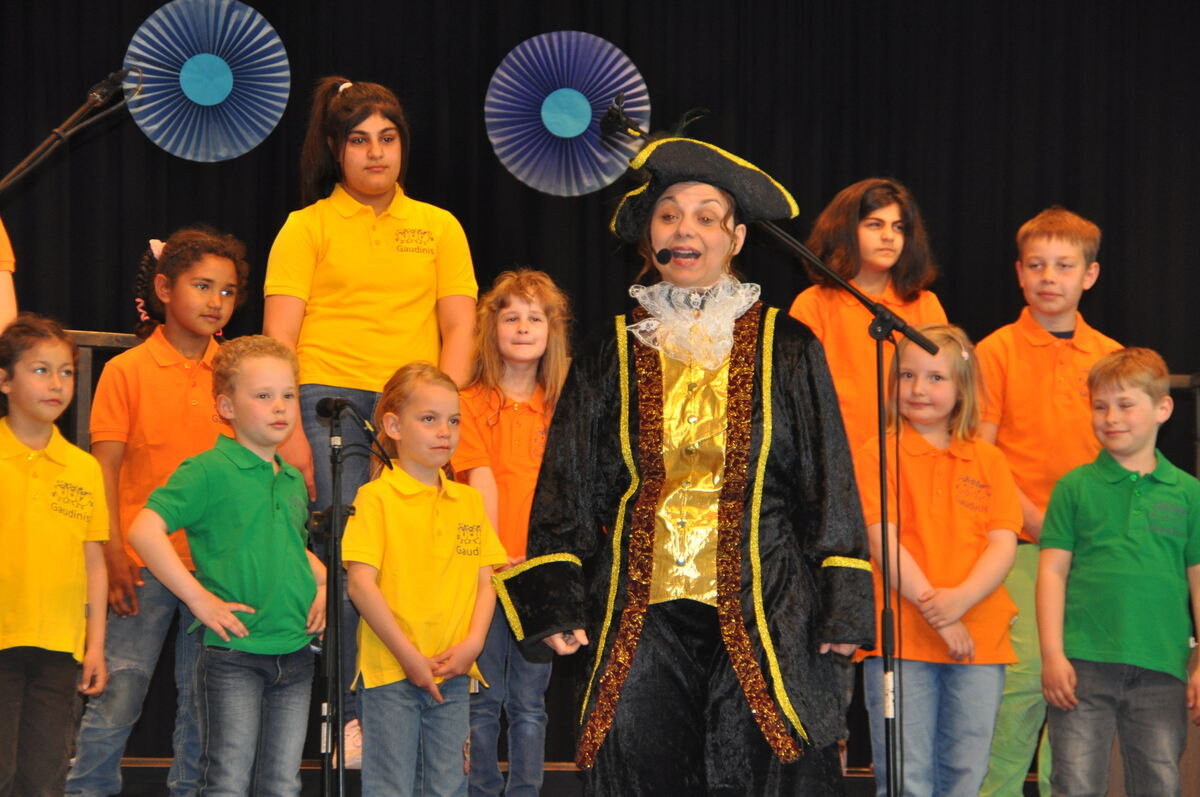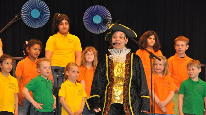 Sie sind die Lokalmatadoren: die Gomadinger Gaudinis, hier mit Moderatorin Katja Spinnler. FOTO: BIMEK