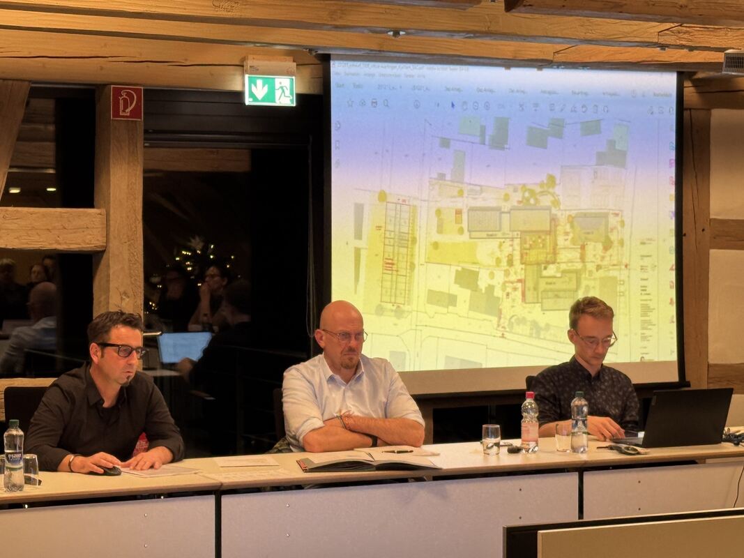 Viele Informationen zu Sanierung und Umbau der Grund- und Werkrealschule in Würtingen gab es für den Gemeinderat von Architekt Matthias Ott (von links), Bürgermeister Florian Bauer und Fachbereichsleiter Kultur, Bauen und Personal Tim Bahnmüller. FOTO: RUOF