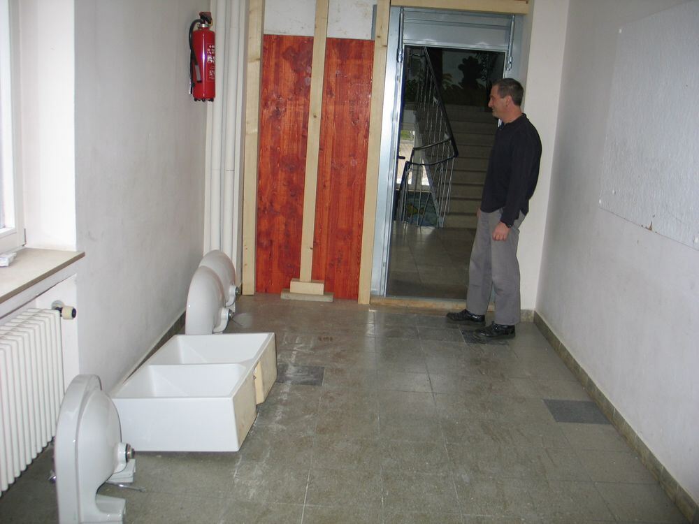 Noch überall Baustelle: Der Umbau des Westhauses an der Hardtschule zum Interimskindergarten will nicht so recht vorangehen. GEA-FOTO: OELKUCH