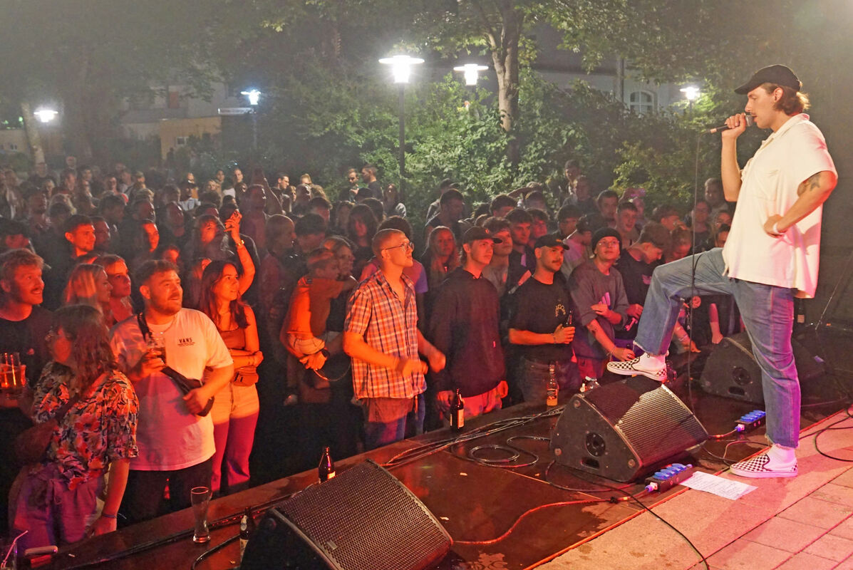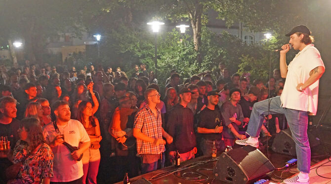 Rappelvoll war am Samstagabend der Matthias-Erzberger-Platz, als das Gässlesrap Kollektiv auf der Bühne Hip-Hop mit schwäbischem Einschlag präsentierte. FOTOS: LENK