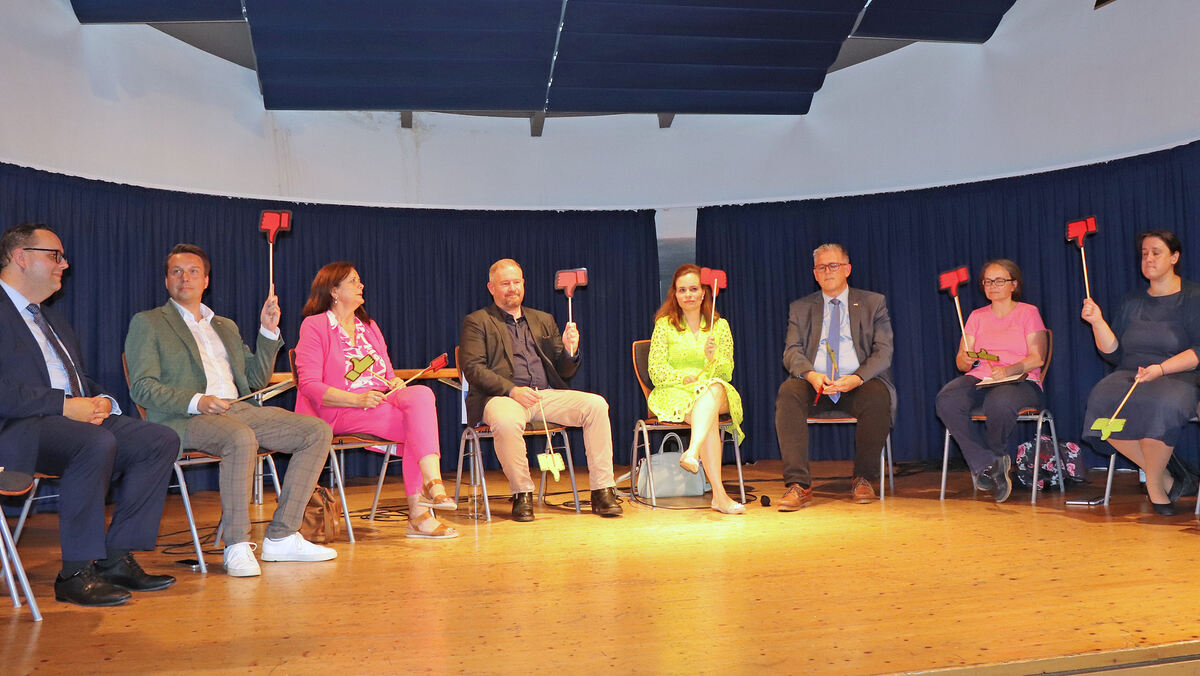Diskutierten über Nachhaltigkeit: Michael Eisele (von links), Manuel Hailfinger, Lisa Kappes-Sassano, Andreas Glück, Bonita Grupp, Michael Donth, Susanne Häcker, Rebecca Hummel.