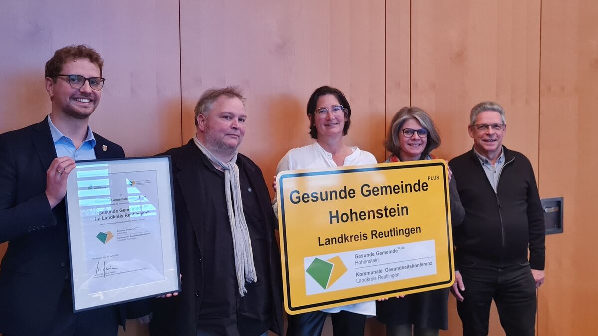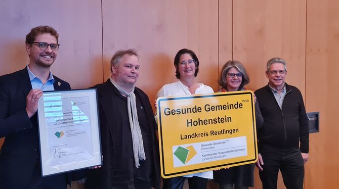 Bürgermeister Simon Baier (links) nahm von Frank Havlicek vom Kreisgesundheitsamt die Auszeichnung entgegen. Mit ihm freuen sich Tanja Glück, Beatrice Vermeij-Böhm und Ulrich Ottmar. FOTO: SCHRADE