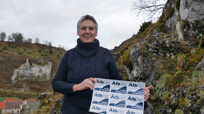 Inzwischen wohnt Angela Steidle in Seeburg und guckt sozusagen von unten nach oben – den legendären Älbler-Überblick hat die Erfinderin des Aufklebers aber immer noch. FOTO: FINK