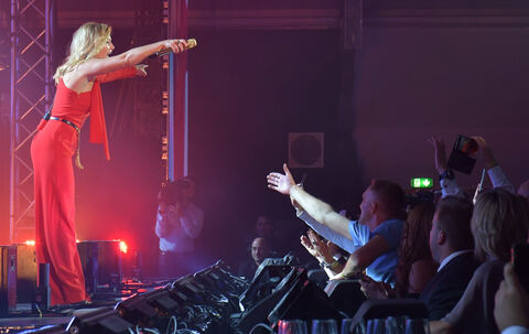 BURLADINGEN. Mit »Let me entertain you« eröffnete der Superstar ihr Konzert um 22 Uhr in dem pompösen Festzelt in der Stadtmitte. Hunderte Zaungäste mussten draußen bleiben. Nur geladene Gäste und Mitarbeiter konnten die anderthalbstündige Show genießen. Immer noch fassungslos über das besondere Geburtstagsgeschenk, das ihnen ihr Chef beschert hatte, reckten die Trigema-Mitarbeiter unzählige Handys gen Bühne: Die erfolgreichste Sängerin Europas, die zuletzt fünf Mal hintereinander die Stuttgarter Schleyer-Halle füllte, stand nun fast zum Anfassen nah im 12 000-Einwohner-Alb-Städtchen.