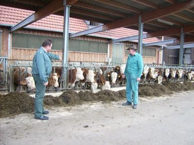 Herrmann Manz (links) und Albrecht Teufel mit den einzigen, die im offenen Vollzug hinter Gittern leben - den Kühen.